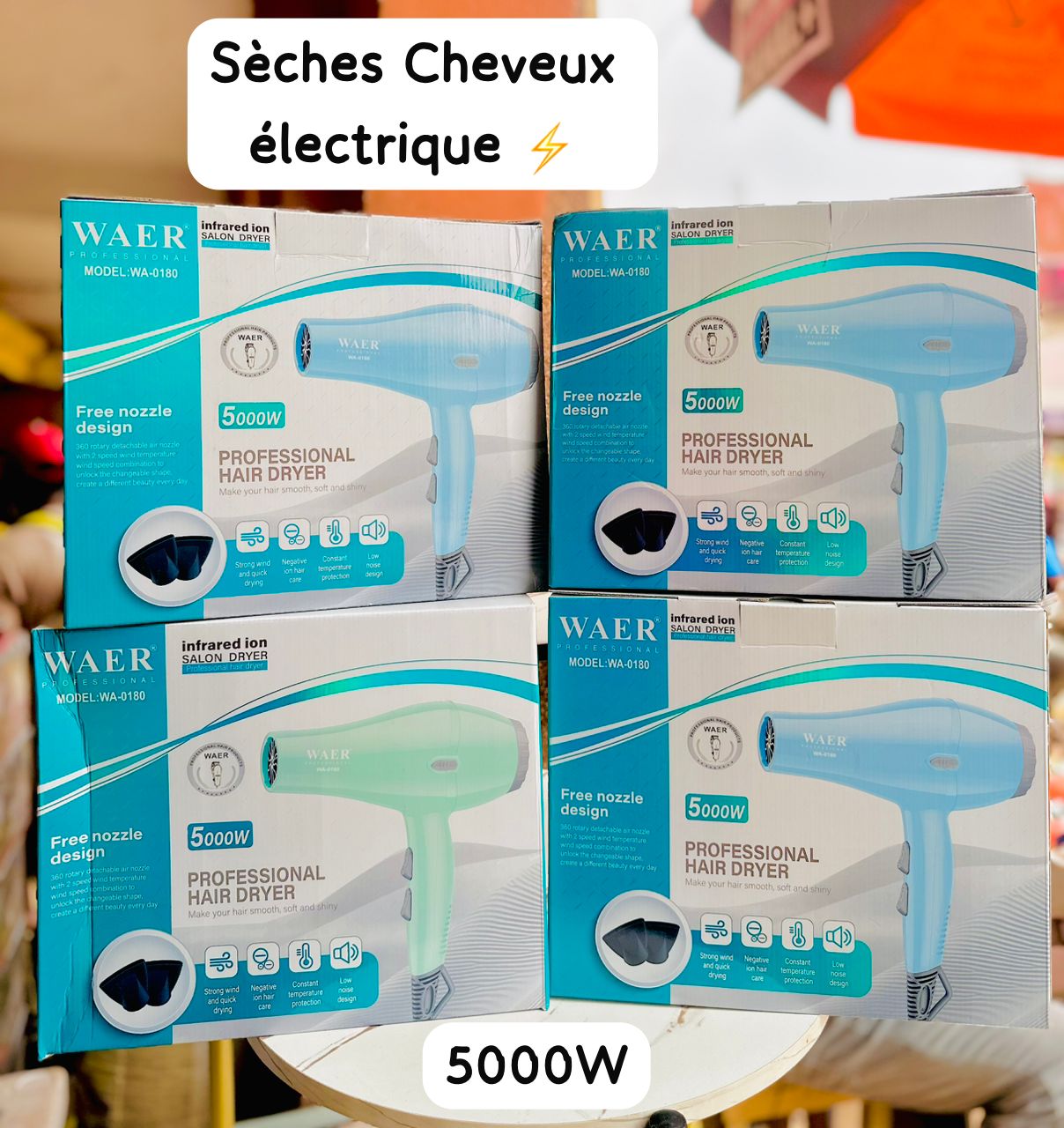 Obtiens un séchage rapide et un résultat digne d’un salon avec le sèche-cheveux professionnel WAER 5000W 💨.