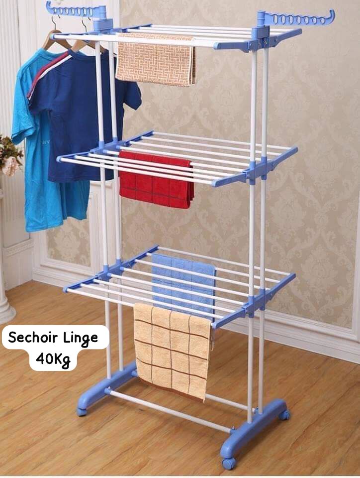 Grâce à ses trois niveaux de rangement, ce séchoir offre un espace suffisant pour suspendre ou poser vos vêtements, serviettes, chaussures et linge. Son design pliable et portable permet de l’installer facilement dans différents espaces comme le balcon, la salle de bain, la chambre ou le jardin.